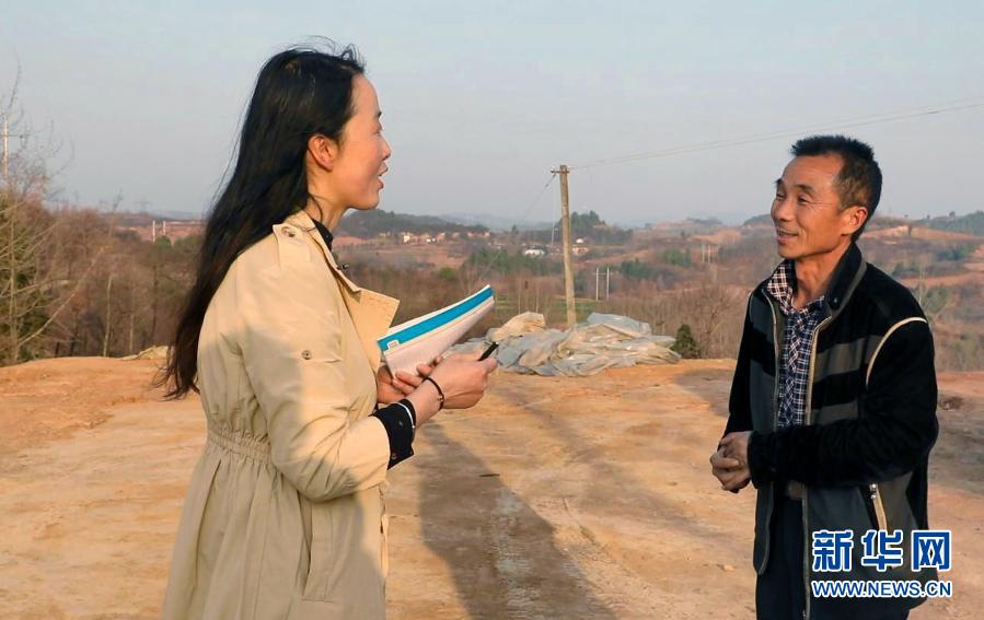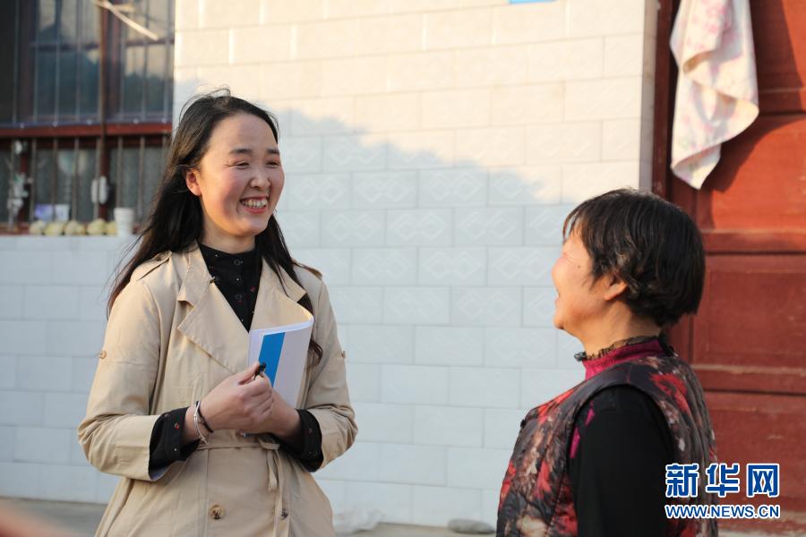 2月23日,在甘肃省陇南市徽县水阳镇石滩村,全国人大代表梁倩娟(左)同村民苟明交流。 新华社记者 张智敏 摄