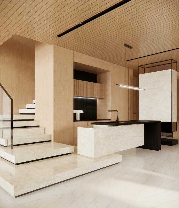 岩板的真正价值,最终要落位于空间应用的广度与深度。在本届展会上,贝利泰展示的不仅是产品本身,更是岩板在不同场景下的适配能力——从私宅别墅的宁静栖居,到商业空间的品质表达。