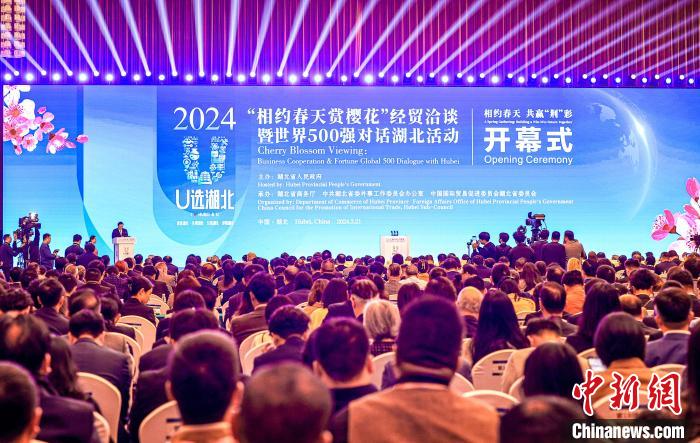 3月21日,2024“相约春天赏樱花”经贸洽谈暨世界500强对话湖北活动在武汉开幕。中新社记者 张畅 摄