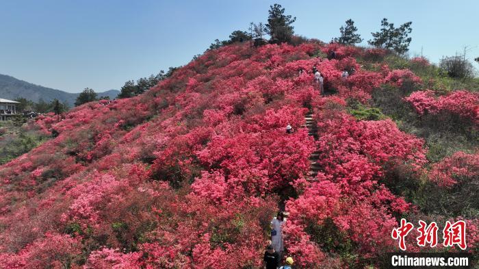 武汉市黄陂区木兰云雾山杜鹃花开。 (航拍图)吴淘淘 摄