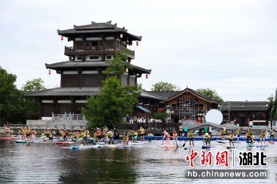由湖北文旅集团主办的2024湖北文旅第一届夏日桨板系列赛28日在仙桃沔阳小镇天鹅湖正式开划。赛事吸引近200位桨板爱好者齐聚天鹅湖,一起划进千年沔阳,品味江汉水乡。