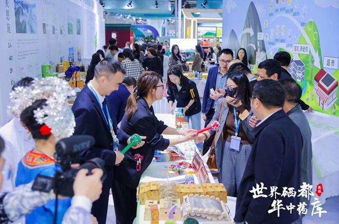 在恩施馆内,琳琅满目的“恩施硒物”受到广大客商的热捧,展示了“世界硒都”独特的风采与魅力。