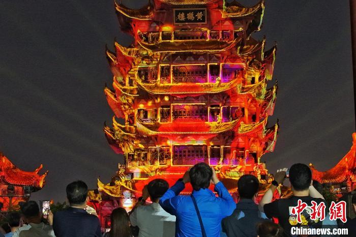 5月14日晚,游客欣赏武汉黄鹤楼夜景。周星亮 摄