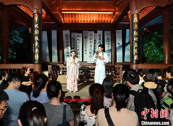 在黄鹤楼灯光秀里,岳飞点兵、崔李题诗等场景通过数字技术呈现游客眼前。来自加拿大乐活传媒的编辑张勇勤是个诗词爱好者。她说,每次登楼,最先想起的一定是浩瀚诗篇。在她看来,当游客扶栏远眺,看长江奔流而过,心生澎湃,便与诗人们产生情感共鸣。