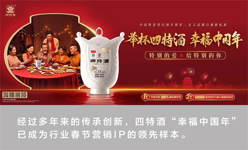作为特香型白酒开创者,四特酒连续7年深耕“幸福中国年”品牌IP,通过场景化的表达方式制造推广话题,向C端输出品牌符号和品牌文化。经过多年来的传承创新,四特酒“幸福中国年”已成为行业春节营销IP的领先样本。
