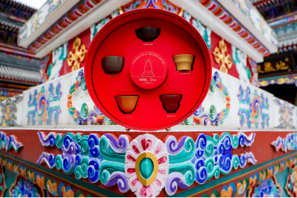 其中,“五福圆满茶”精选五款经典名茶,每款茶对应不同的吉祥寓意,更与五台山五峰五福的圆满概念呼应:大红袍象征红袍加身、熟普代表鸿运普照、寿眉对应福寿安康、桂花六堡寓意大富大贵、冰岛白茶象征白首同心。礼盒中配套的“五福吉祥杯”在材质上选用宜兴原矿紫砂,兼顾实用价值与文化寓意,五款器型各藏巧思:即花瓣杯“妙笔生花”、竹节杯“节节高升”、葫芦杯“福禄绵长”、八方杯“八方来财”、四方杯“四时如意”。