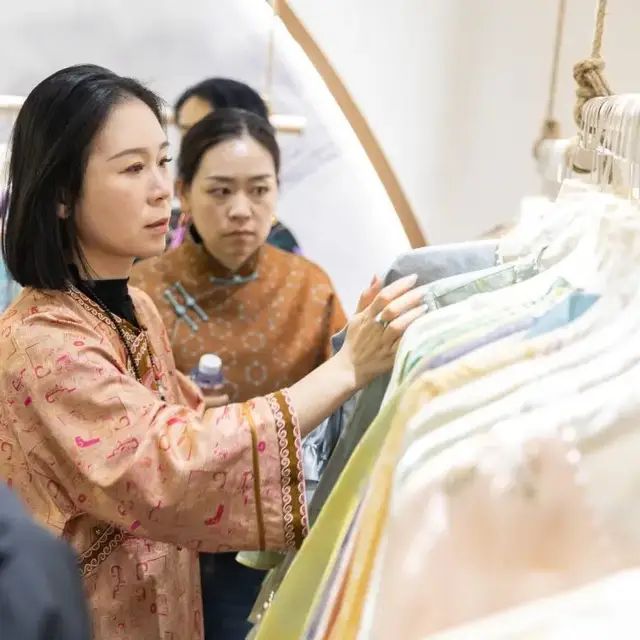 国风浪潮在此超越了符号化表达,时尚极简的宋锦马甲、非遗刺绣长裙、民族风植物染皮衣、融合国风创意的学士服……让买家沉浸式感受到传统美学的澎湃生命力及其当代转译。
