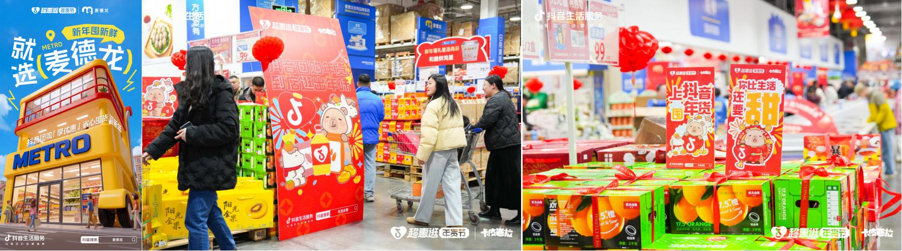 随着今年春节的临近,抖音生活服务精心打造「超惠逛年货节」,掀起了一场线上锁定优惠、线下享受体验的囤年货消费热潮。从明星、达人分享“先团后逛”年货置办新思路,到用户自发加入讨论囤年货心得和攻略,「超惠逛年货节」汇聚日用超市、综合商超、珠宝首饰、服装配饰四大品类,以“在线种草+线上团购+线下体验”的一站式购物体验,激活零售全渠道消费活力,让实惠与年味无缝融合。