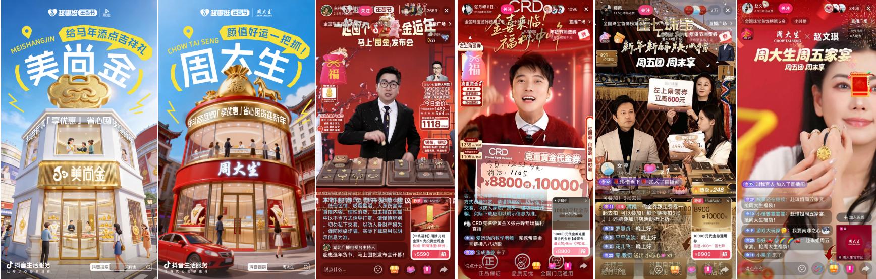 海量珠宝首饰品牌商家上新与“好运”“纳福”美好寓意相关的爆款单品,并联动知名明星、流量主播进行年货节、情人节等专场直播福利放送,撬动送礼、自用、理财多重需求。紧跟用户消费趋势的明牌珠宝,也上新了“小富马”等适合礼赠、悦己的单品,并携手主持人阿喆打造新闻连麦玩法,引爆新年囤货大场直播,该场直播GMV突破1亿。